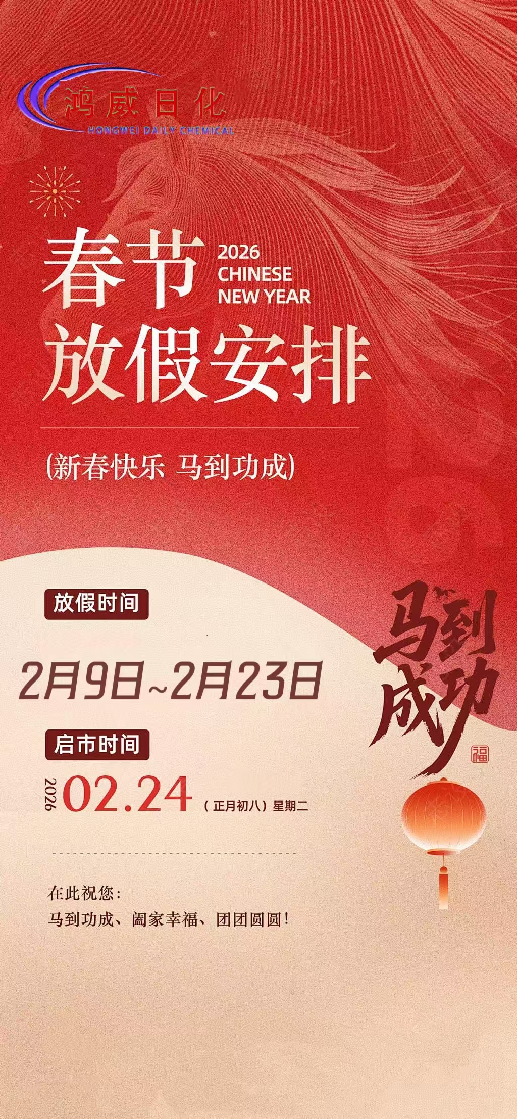 鸿威日化2026春节放假通知📣