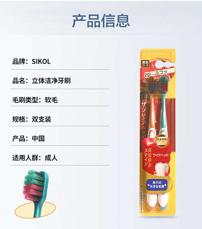 【品名】SIKOL立体洁净牙刷(斯可丽双支装)